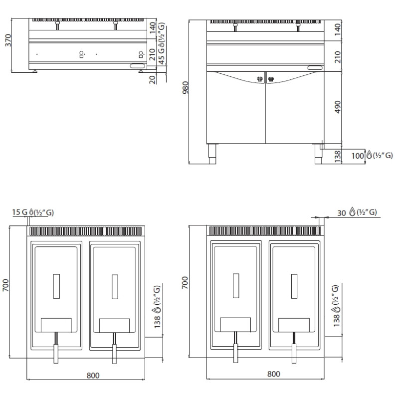 Profesionali dujinė gruzdintuvė „Berto's“ TURBO GL10+10B