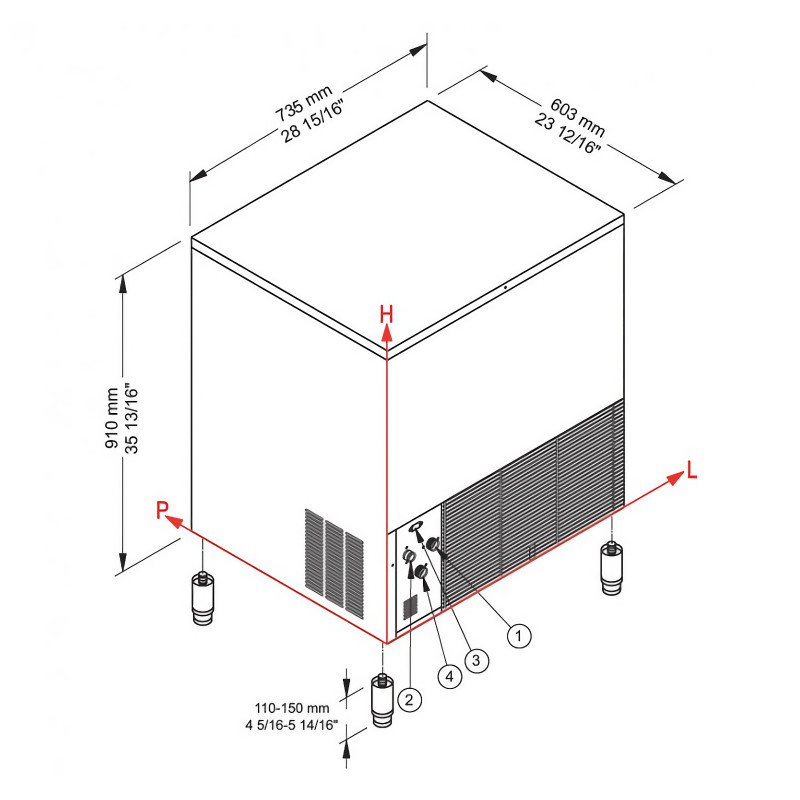Išmatavimai: 735x603x910 mm + (110/150 mm reguliuojamos kojelės)