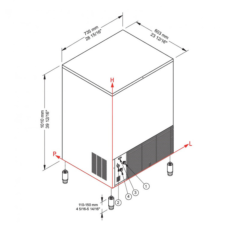 Išmatavimai: 735x603x1010 mm + (110/150 mm reguliuojamos kojelės)