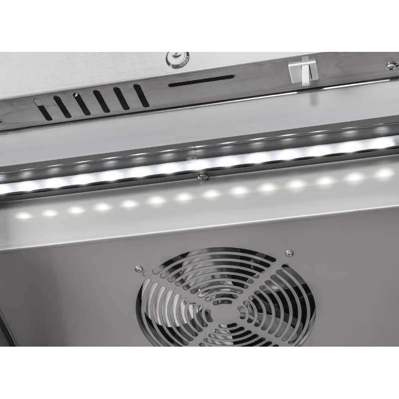 Šaldiklis komplektuojamas su 3 reguliuojamomis + 1 papildoma GN2/1 formato lentyna.